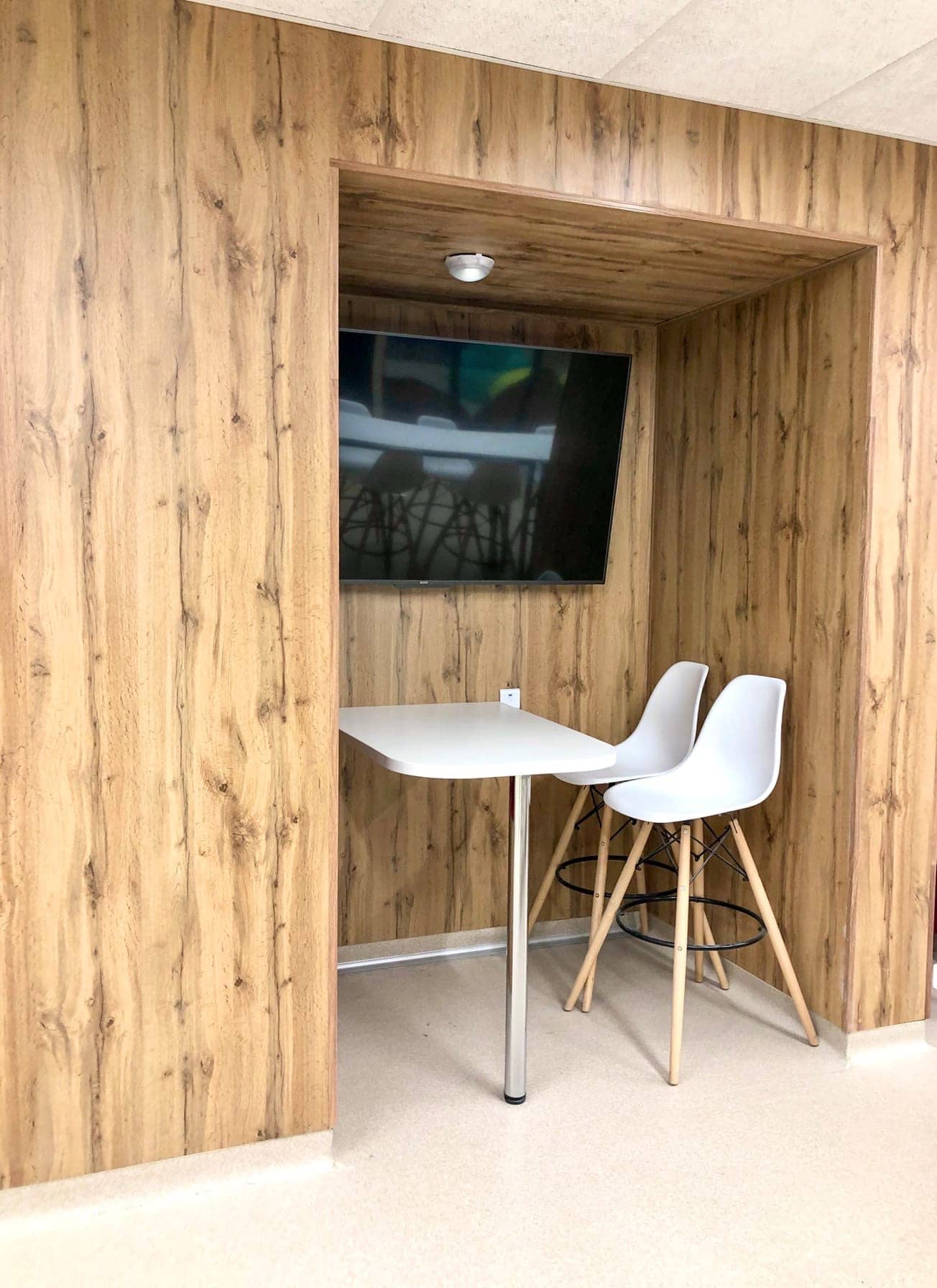 Изготовлена привлекающая внимание зона ожидания посетителей.