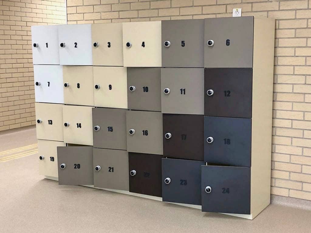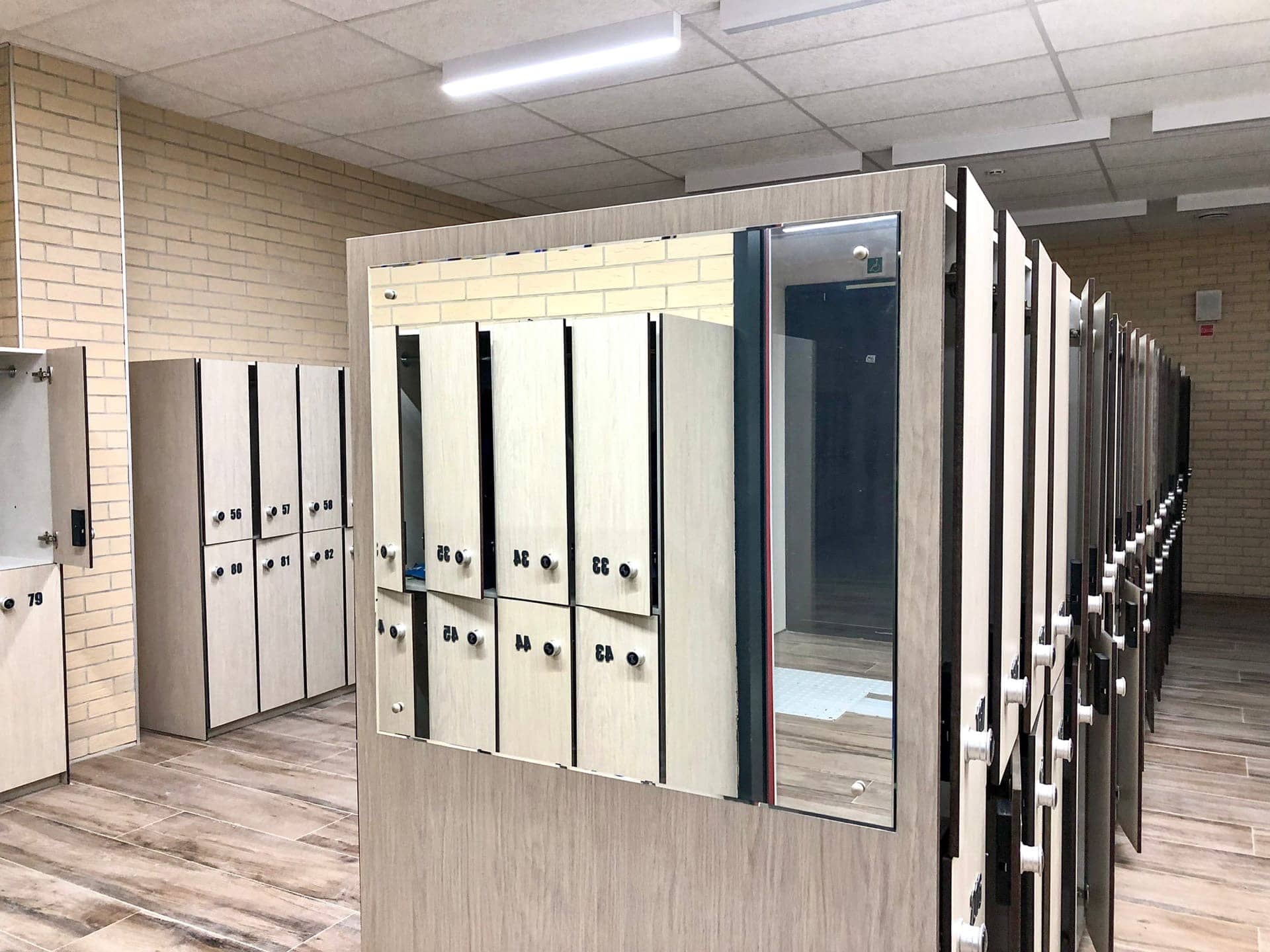 Индивидуальные шкафчики для хранения одежды и сменной обуви, с доступом через личные карты-ключи.